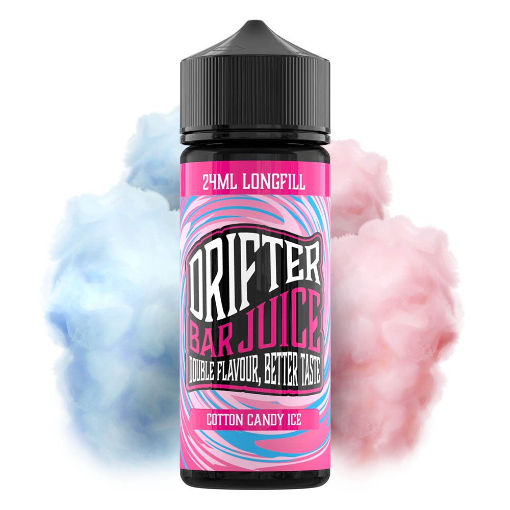 Απόλαυσε τη γλυκιά και παιχνιδιάρικη γεύση του Cotton Candy με πάγο σε κάθε εισπνοή με το Drifter Bar Juice Cotton Candy Ice 120ml!